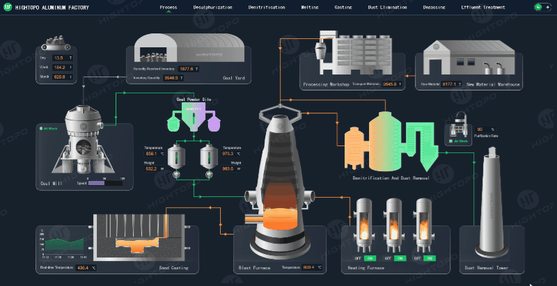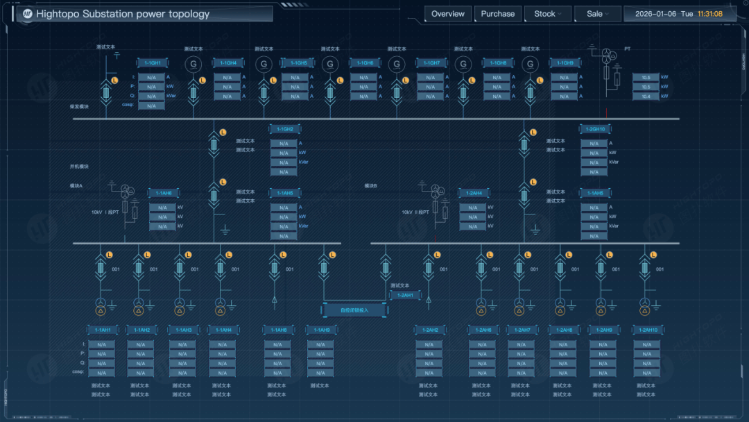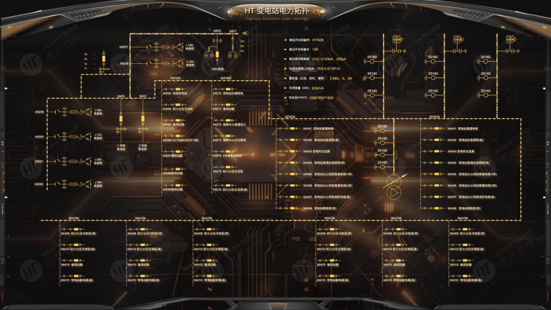 图扑 HT 平台的组态电力接线图与工业流程图能力表现突出:前者可复现供电系统线路拓扑及设备连接关系,实时反馈运行参数,助力运维人员快速定位故障、优化调度;后者数字化复现生产流程,清晰呈现设备联动逻辑与工艺路径,结合数据联动实现状态实时管控及异常溯源,大幅降低运维成本,提升管控精细化水平。