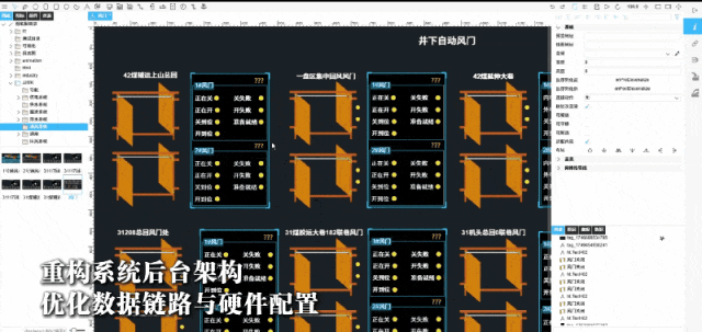 此次升级攻克了传统矿山系统界面杂乱、操作逻辑不统一的痛点,实现综采、掘进等各系统操作界面的标准化统一。采用图扑 HT 2D 图形编辑与组态能力——神东团队自主通过图扑 HT 编辑器,完成了专业级工业人机界面(HMI)的设计、开发、调试与上线。